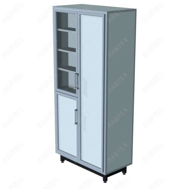 Шкаф лабораторный ЛАБТЕХ-ТШ-203, 830*420*1700. Шкаф лабораторный ЛАБТЕХ-ТШ-203 Шкаф используется для хранения посуды и лабораторных материалов. Верхнее левое отделение — стеклянная дверца в алюминиевой раме и 3 стеклянных полки. Правое отделение — стальная дверца в алюминиевой раме и 4 металлических полок. Нижнее отделение — стальная дверца в алюминиевой раме и металлическая полка. На стальных дверцах установлен замок. Каркас сварной из стальных труб, обшивка из высококачественной листовой стали марки 08пс. Обшивка окрашена порошковой кра...Подробнее
